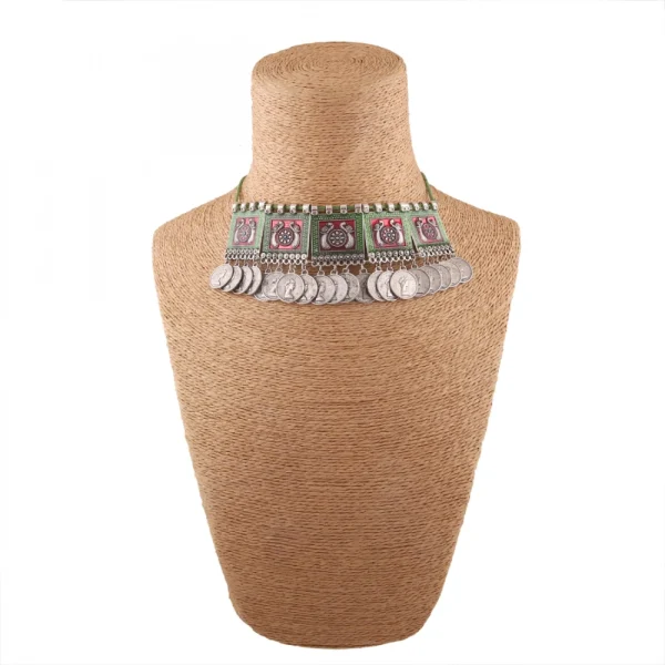 Oxidised Silver Plated Meena Work Choker Necklace
