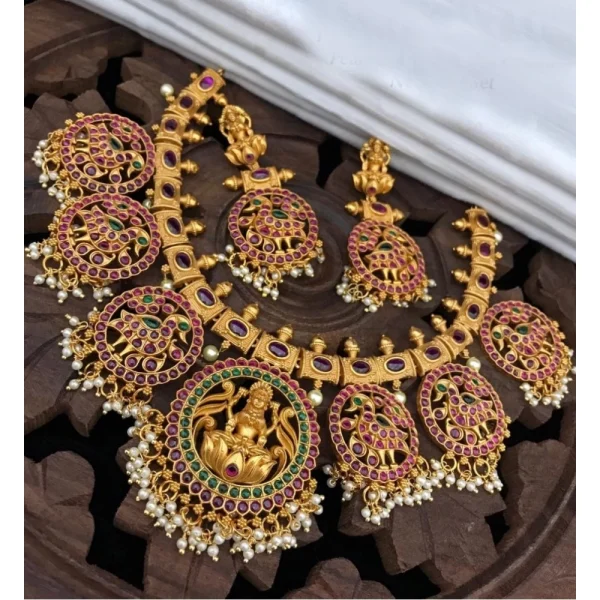 Women’s Goddess Glamour Gold Plated Temple Necklace and Jhumka Sett