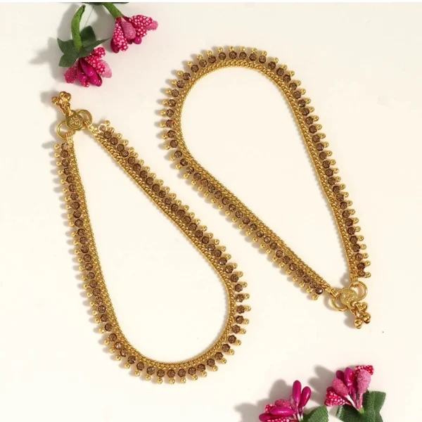 Women’s Gold Color Rhinestone Anklets (Free Size: Upto 10")