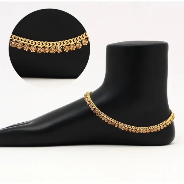 Women’s Gold Color Rhinestone Anklets (Free Size: Upto 10")