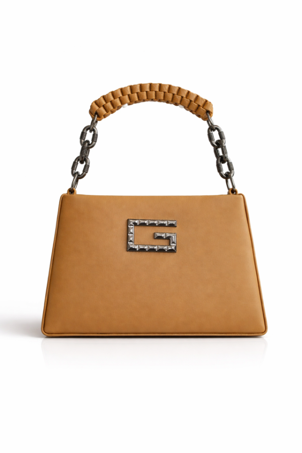 Women’s Tan Faux Leather Handbag | Structured Top Handle Shoulder Bag with Chain Strap