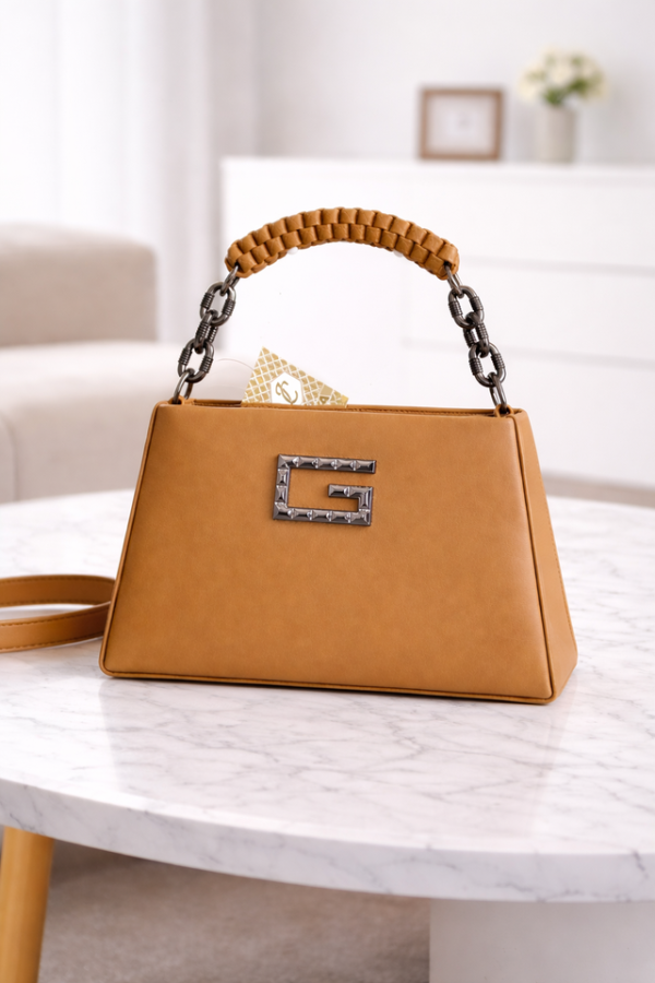 Be the first to review “Women’s Tan Faux Leather Handbag | Structured Top Handle Shoulder Bag with Chain Strap”