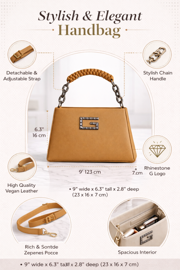 The bag comes with a comfortable top handle for easy hand carry and a durable chain strap that allows convenient shoulder or crossbody use. Crafted from high-quality faux leather, it delivers a premium look while being lightweight and easy to maintain.