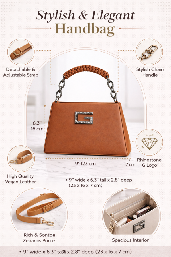 The bag comes with a comfortable top handle for easy hand carry and a durable chain strap that allows convenient shoulder or crossbody use. Crafted from high-quality faux leather, it delivers a premium look while being lightweight and easy to maintain.