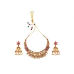 Women’s Temple Elegance Gold Plated Necklace and Earrings Set (Red, Free Size)