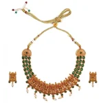 Women’s Traditional Temple Necklace and Earrings Set in Gold (Multi Color, Free Size)
