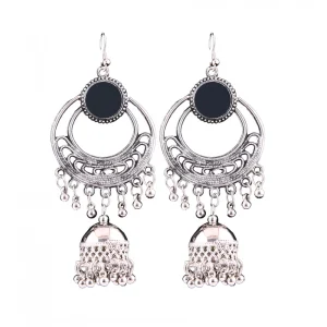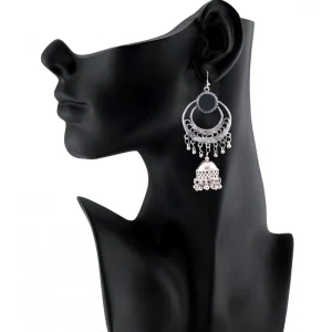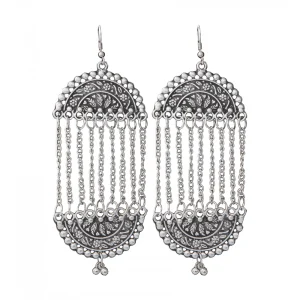 Women's Silver Oxidized Hook Dangler Hanging Afgani Tribal Fancy Earrings-Silver