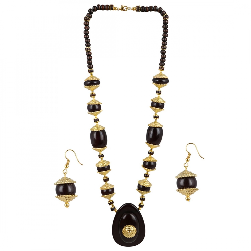 + Free ShippingDesigner Dark Brown and Golden Beads South Style Necklace,