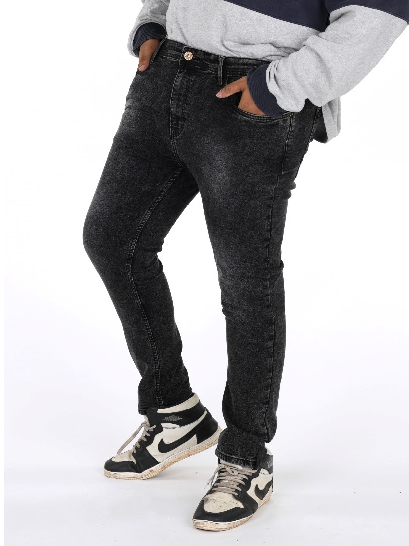 Generic Men’s Cotton Blended Solid Plus Size Jeans (Grey)