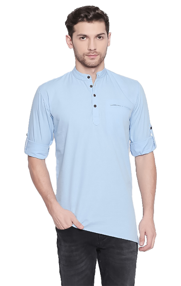 Generic Men’s Cotton Casual Short Cross Kurta Shirt (Material: Cotton, (Color:Light Blue)