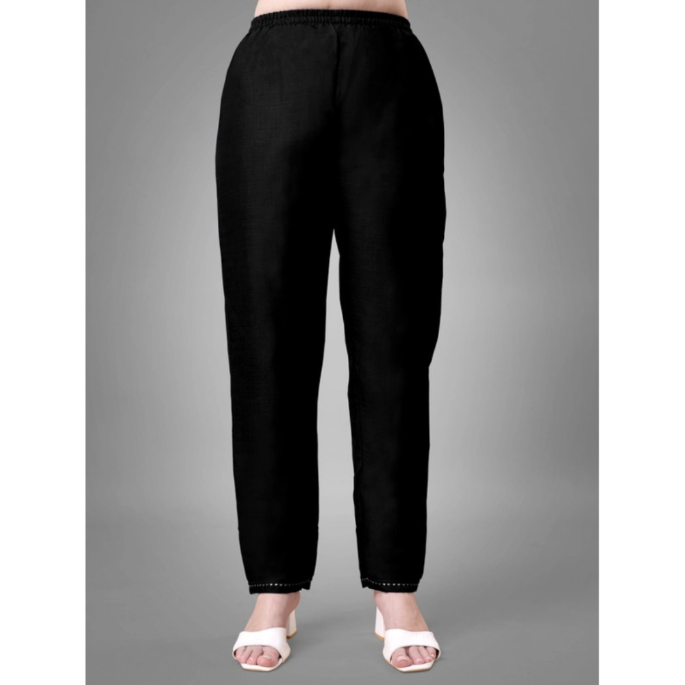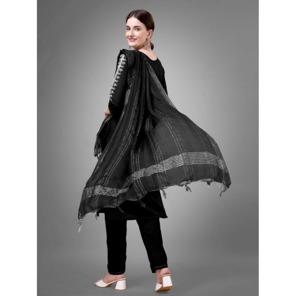 Generic Women’s Casual 3-4 th Sleeve Embroidery Cotton Kurti Pant Dupatta Set (Black)