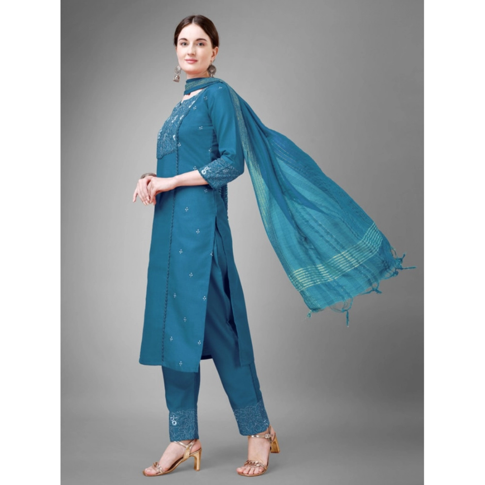 Women’s Casual 3-4 th Sleeve Embroidery Cotton Kurti Pant Dupatta Set