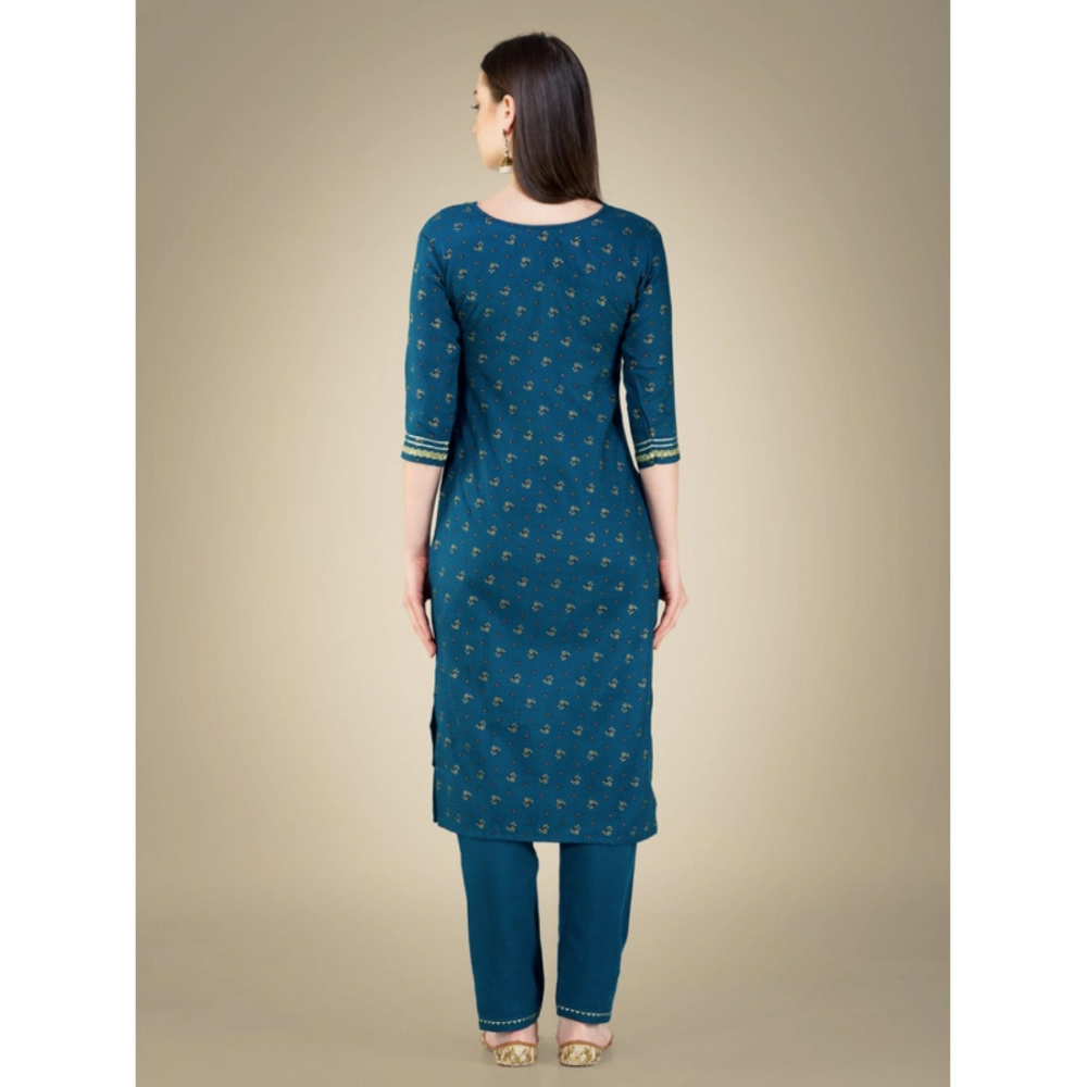 Women’s Casual 3-4 th Sleeve Embroidery Cotton Kurti Pant Dupatta Set