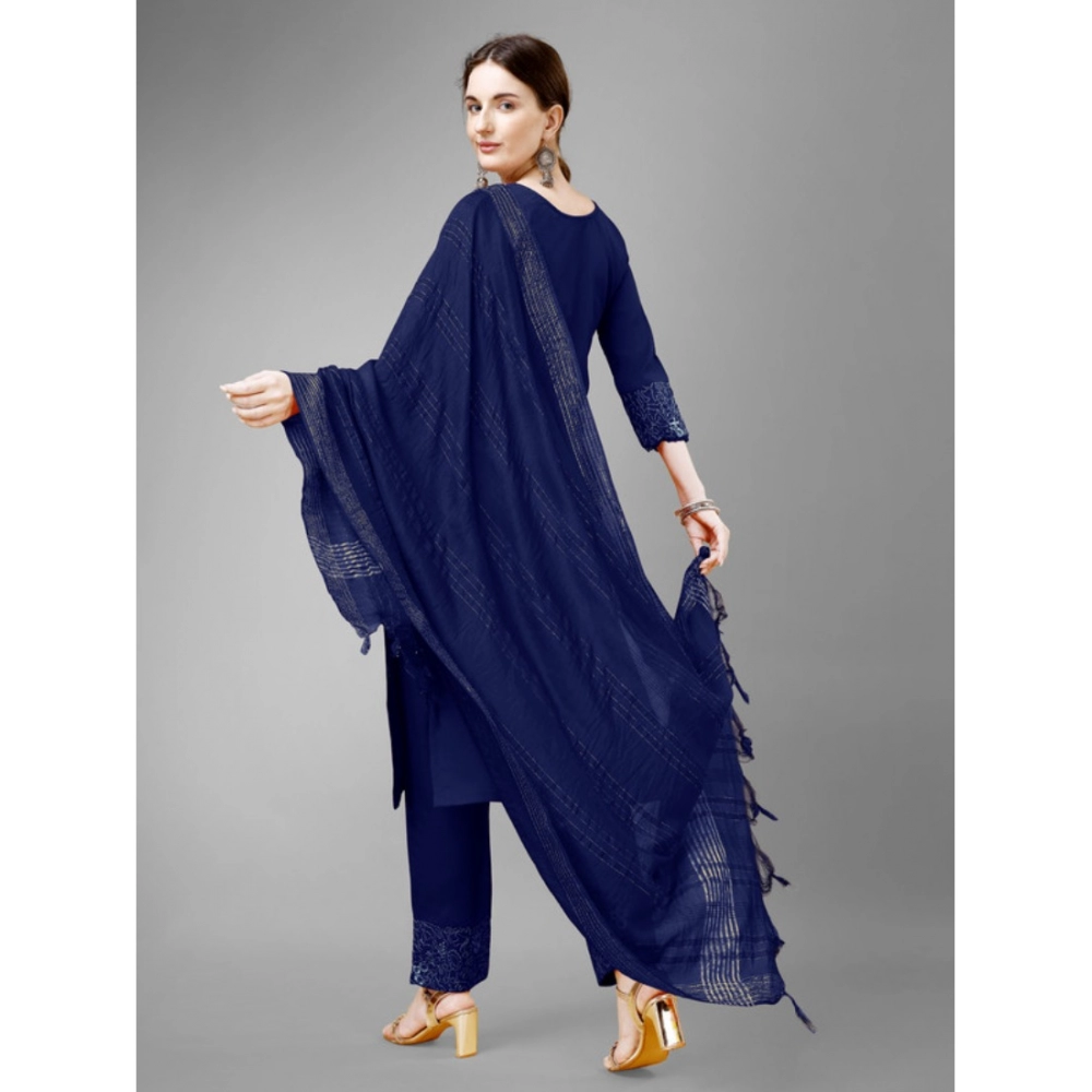 Women’s Casual 3-4 th Sleeve Embroidery Cotton Kurti Pant Dupatta Set