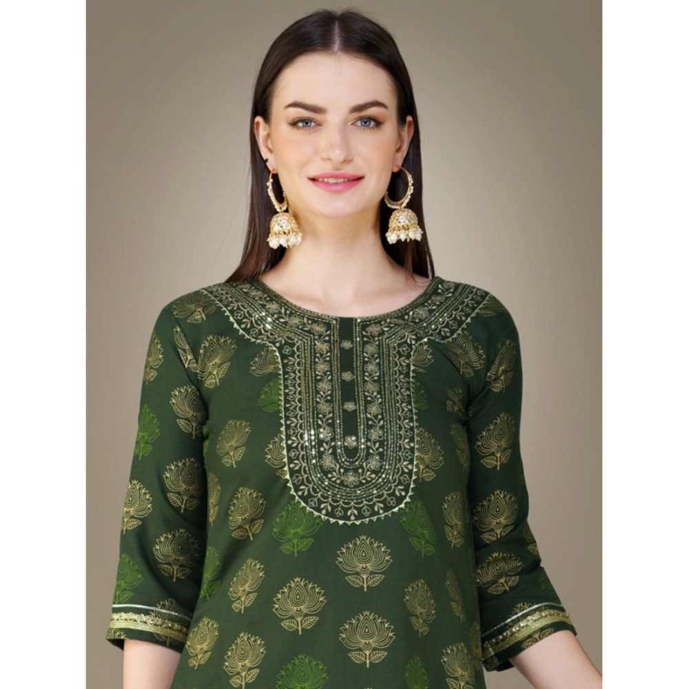 Women’s Casual 3-4 th Sleeve Embroidery Cotton Kurti Pant Dupatta Set