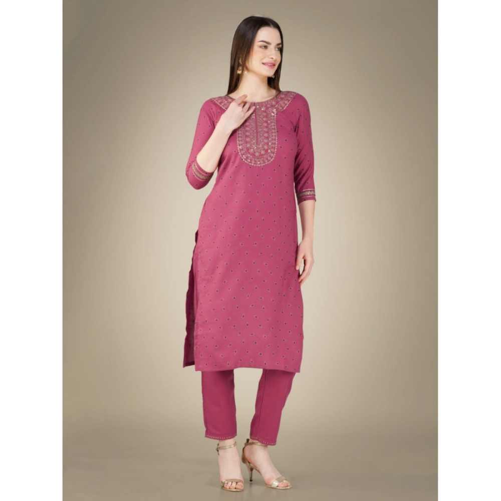 Women’s Casual 3-4 th Sleeve Embroidery Cotton Kurti Pant Dupatta Set
