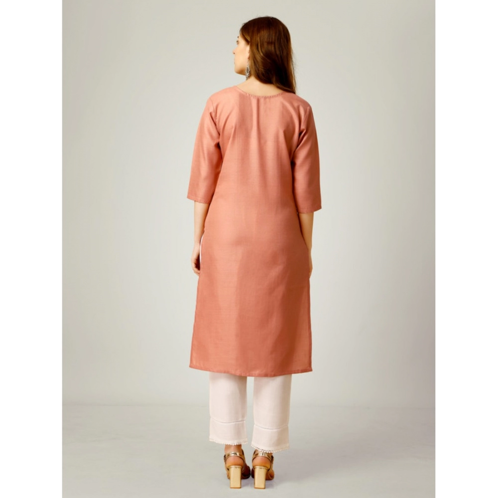 Women’s Casual 3-4 th Sleeve Embroidery Cotton Kurti Pant Set