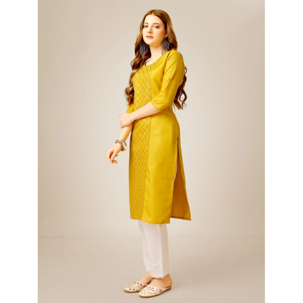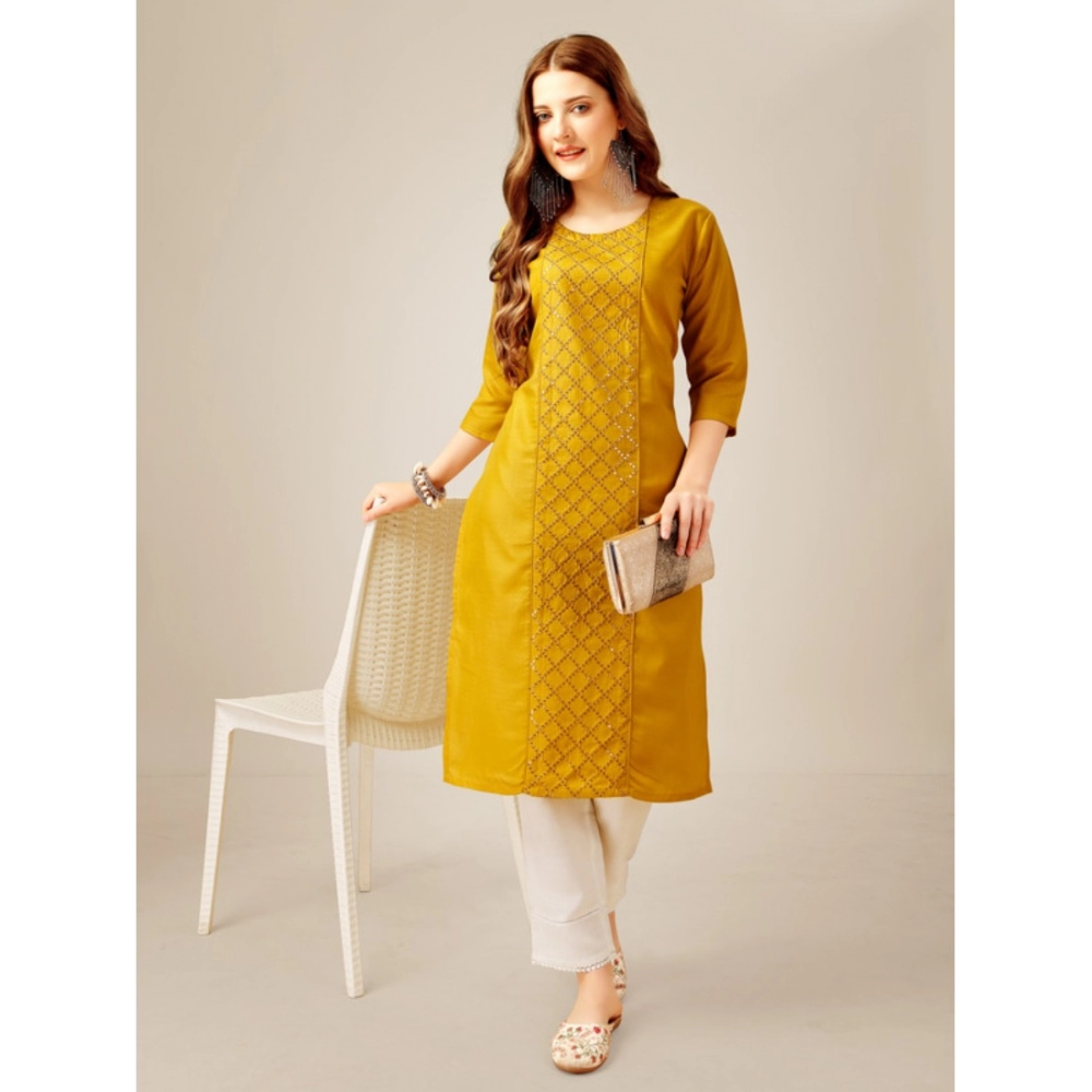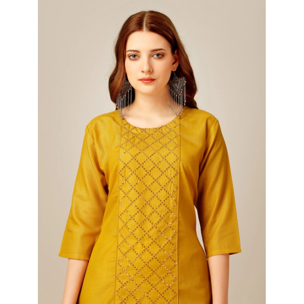 Women’s Casual 3-4 th Sleeve Embroidery Cotton Kurti Pant Set