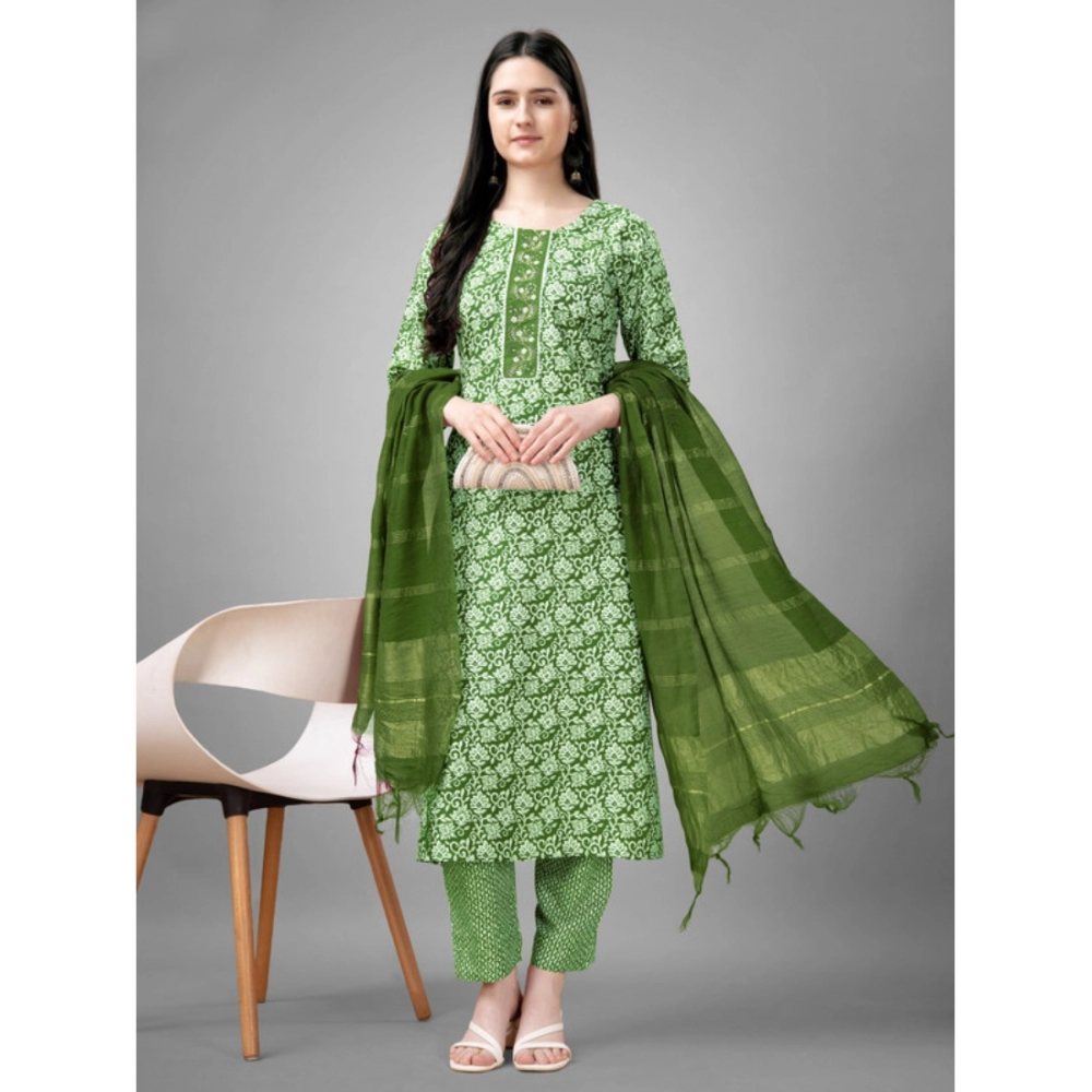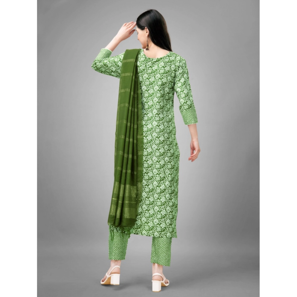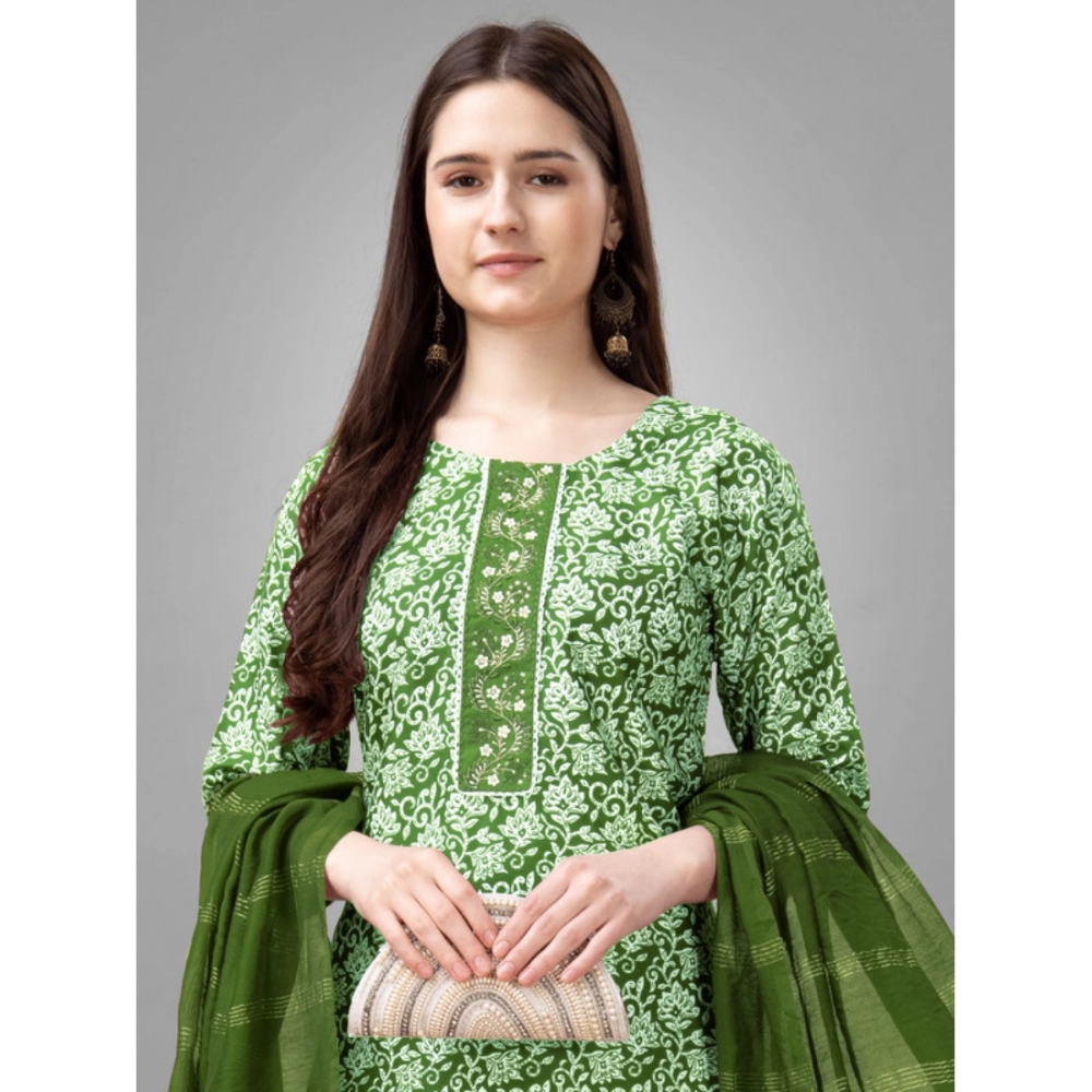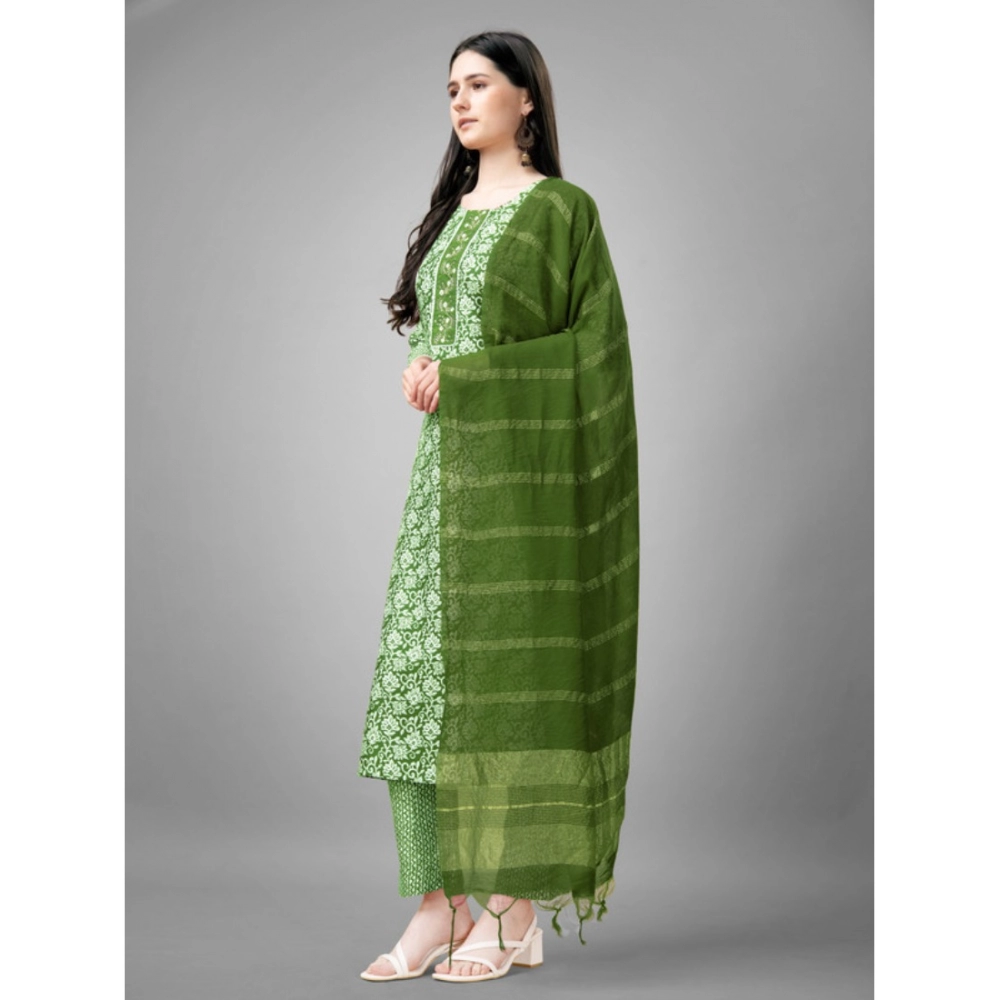 Women’s Casual 3-4 th Sleeve Embroidery Rayon Kurti Pant Dupatta Set