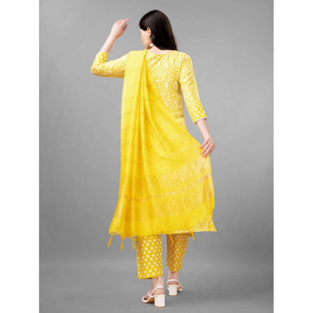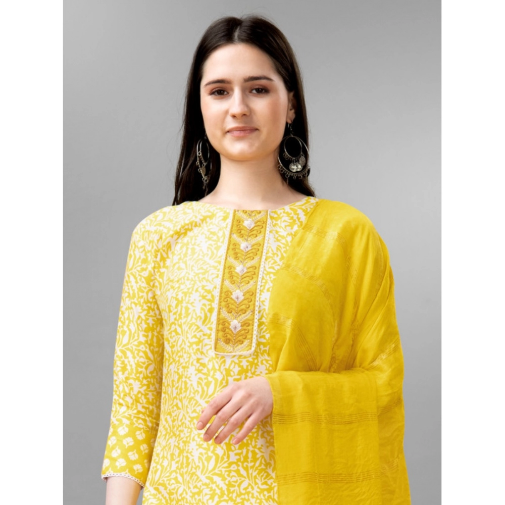 Women’s Casual 3-4 th Sleeve Embroidery Rayon Kurti Pant Dupatta Set