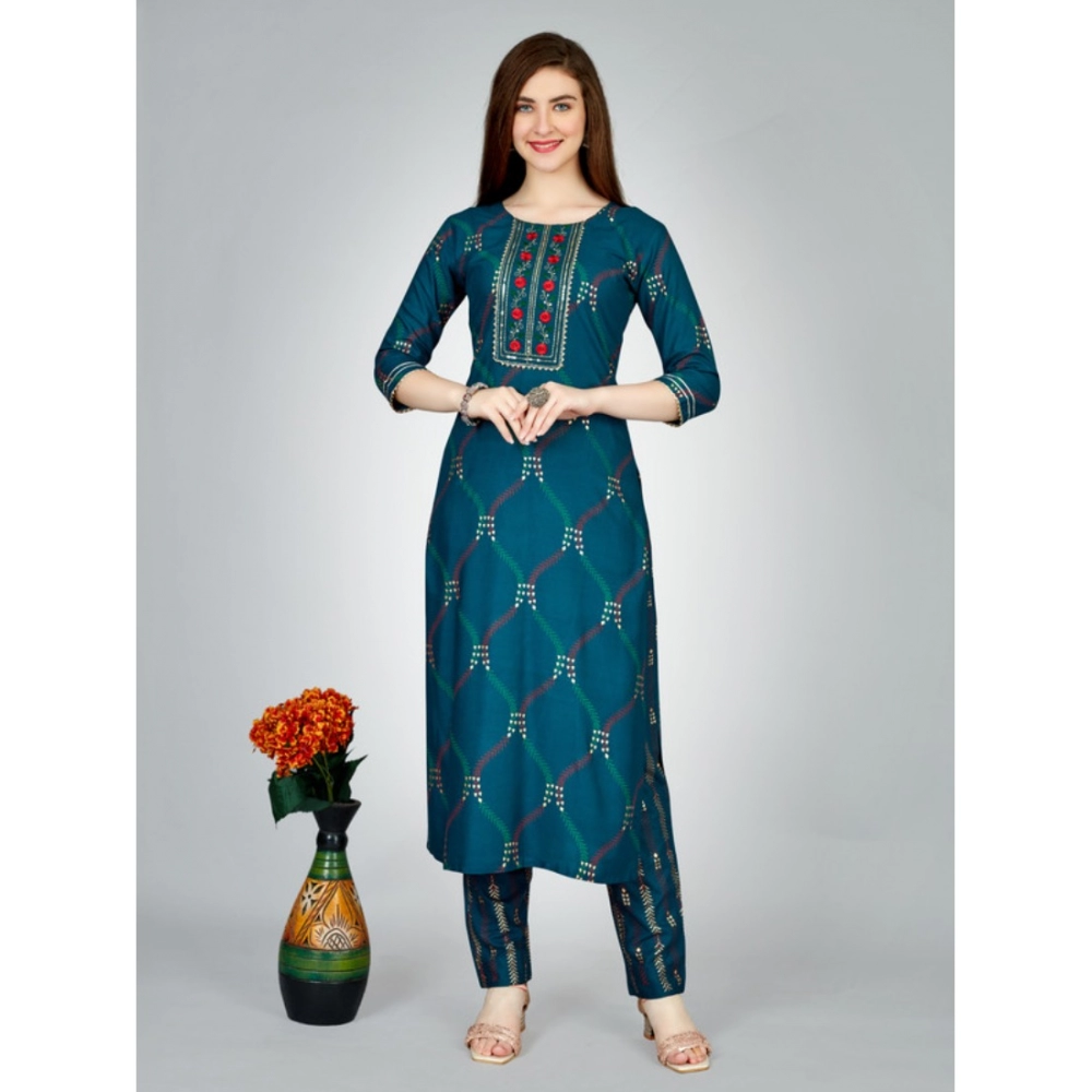 Women’s Casual 3-4 th Sleeve Embroidery Rayon Kurti Pant Set