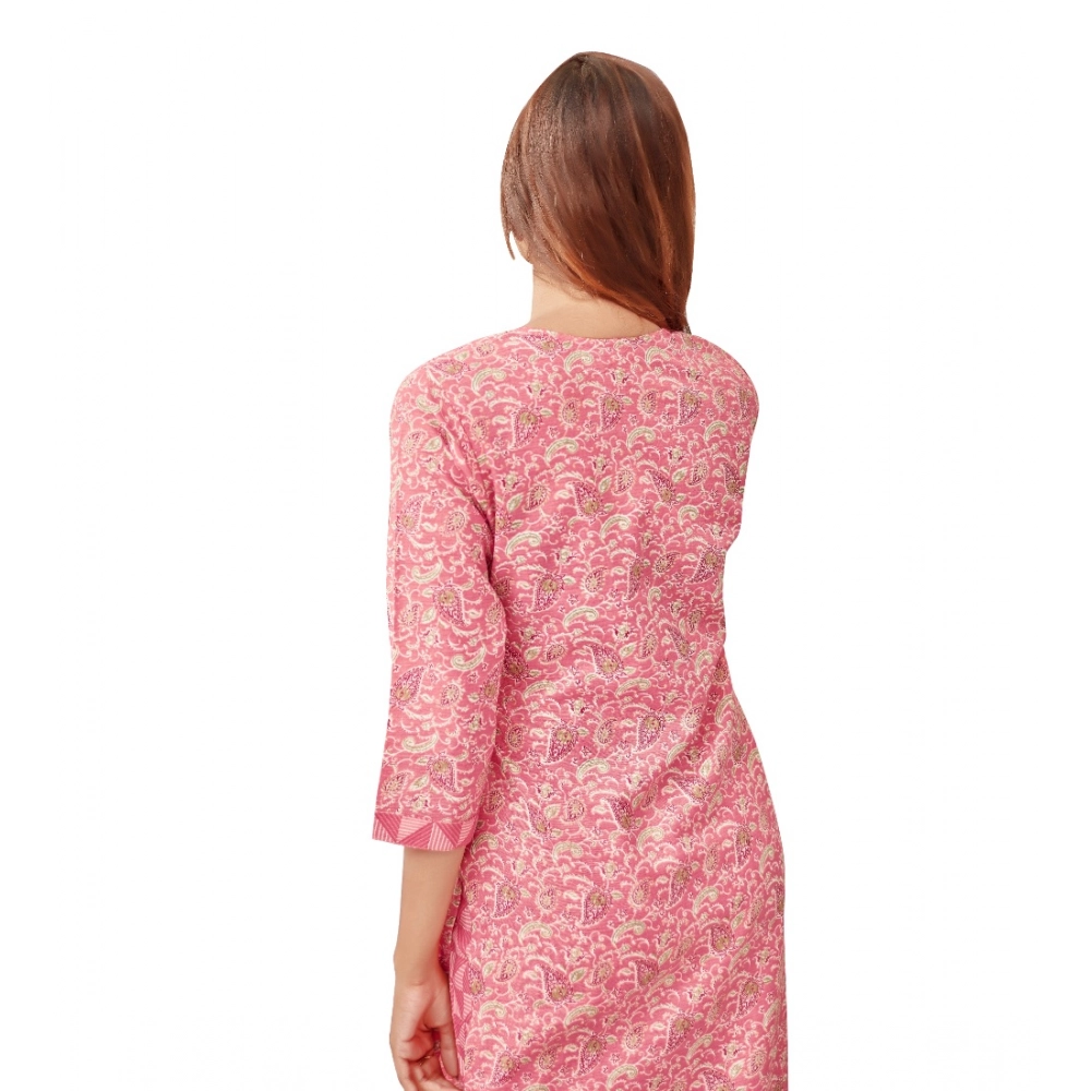 Women’s Cotton Blend Foil Print – Mirror Work 3-4 th Sleeve Round Neck Kurti With Pant Set