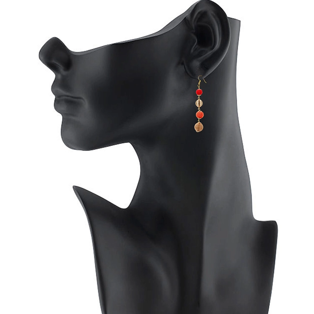 Generic Women’s Gold Plated Hook Dangler Hanging Tassel Earrings-Golden,Red